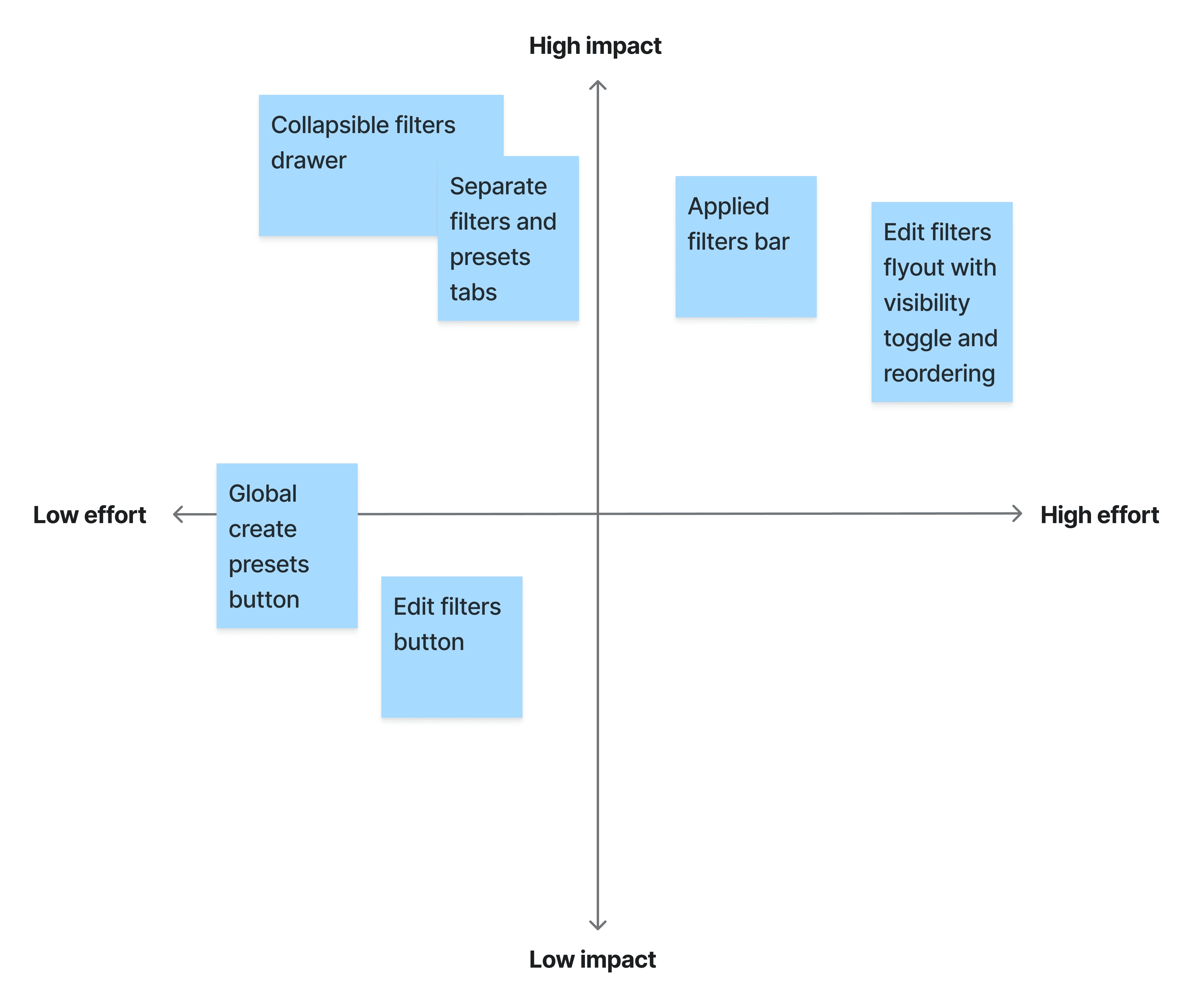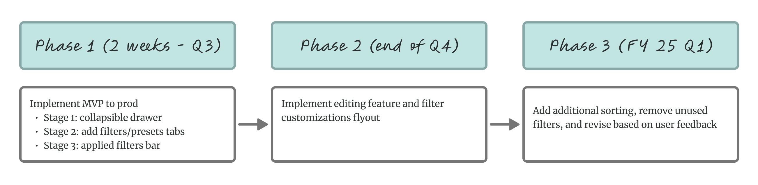 But then I came back to the north star: making the filtering experience more efficient so sales representatives could find opportunities and close deals faster. I thought, would they rather have better filters in two weeks, or perfect filters in five months?